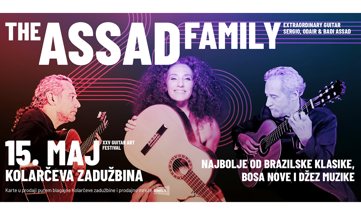 Jubilarni 25. po redu Guitar Art Festival počinje duplim Asad koncertom, 15. maja na Velikoj sceni Kolarčeve zadužbine. Prvo će nastupiti jedan od najboljih klasičnih gitarskih dua Serđo i Odair Asad, a zatim sledi koncert legendarne pevačice i gitaristkinje koja je unela revoluciju u svet gitarske muzike Badi Asad.