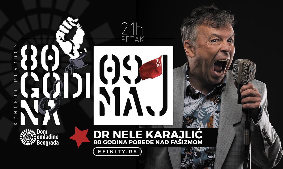 Ove godine se širom sveta obeležava veliki jubilej: 80 godina pobede nad fašizmom. Tim povodom Dom omladine Beograda organizuje koncert dr Neleta Karajlića, koji će sa svojim bendom 9. maja u Amerikani (21h) izvesti program sačinjen od numera iz repretoara Zabranjenog pušenja i solo karijere. Kroz pesme i video ilustracije, ovo veče će nas hronološki provesti kroz priču o tome šta nam se sve dešavalo u međuvremenu, sa osnovnom porukom: rok kultura je deo antifašističke borbe!