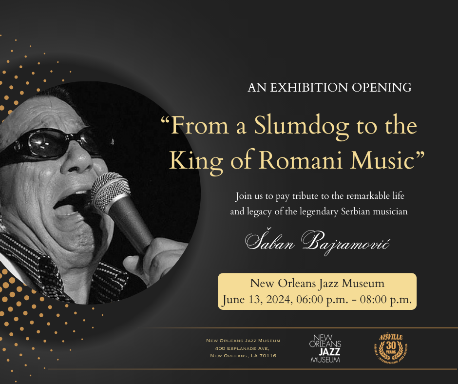 Izložba posvećena životu i delu Šabana Bajramovića biće otvorena u četvrtak 13. juna, u 18h u najpoznatijem svetskom džez muzeju u New Orleans-u, u prisustvu visokih američkih zvanica i predstavnika srpske dijaspore.