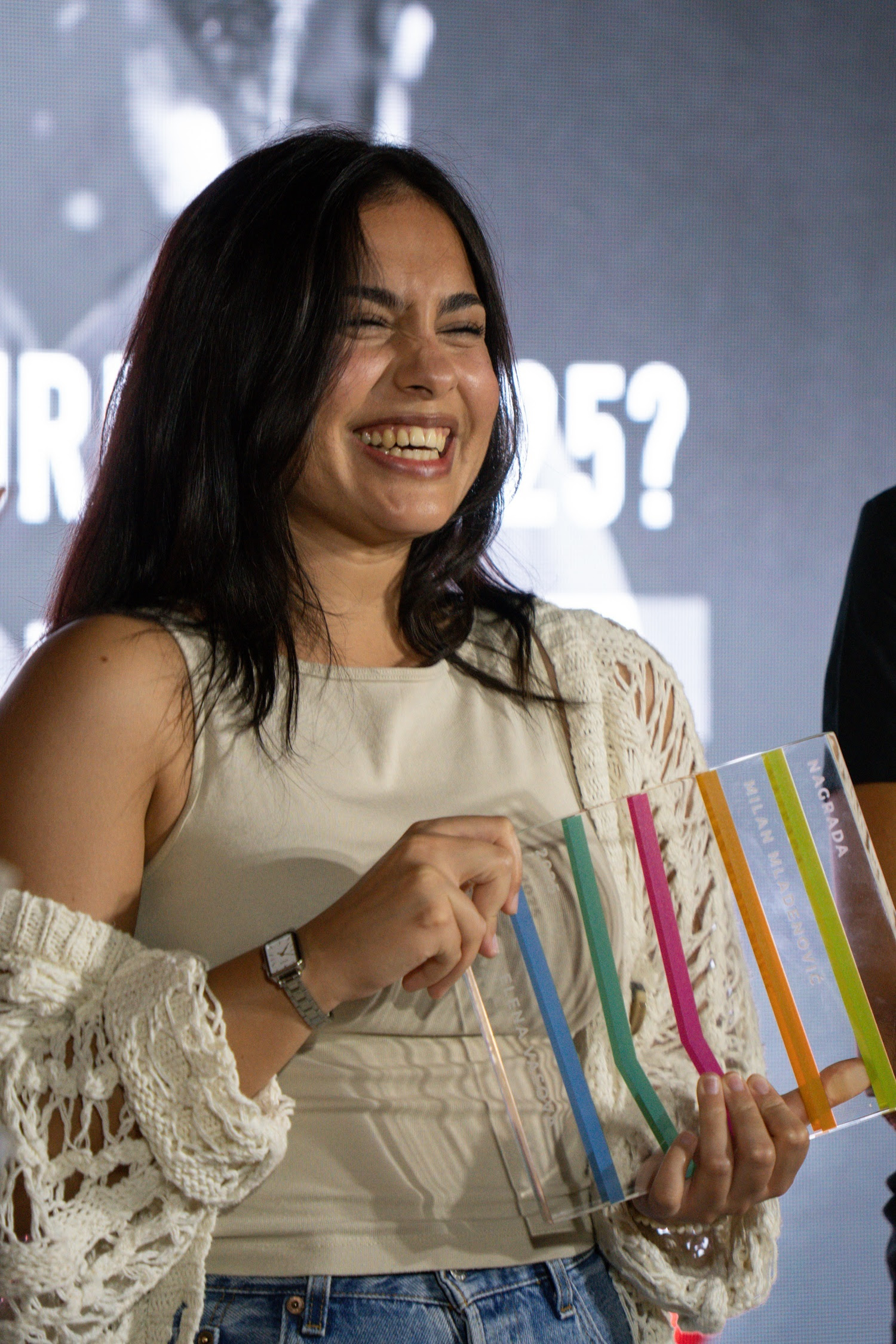 ,,Hvala vam što podržavate i nas koji smo manje vidljivi, što možemo da kažemo nešto iskreno i da širimo ljubav“, emotivno je prokomentarisala Elena Vasova dobijanje Nagrade Milan Mladenović 2025 u vrtu Dvorane Arte u Makarskoj.