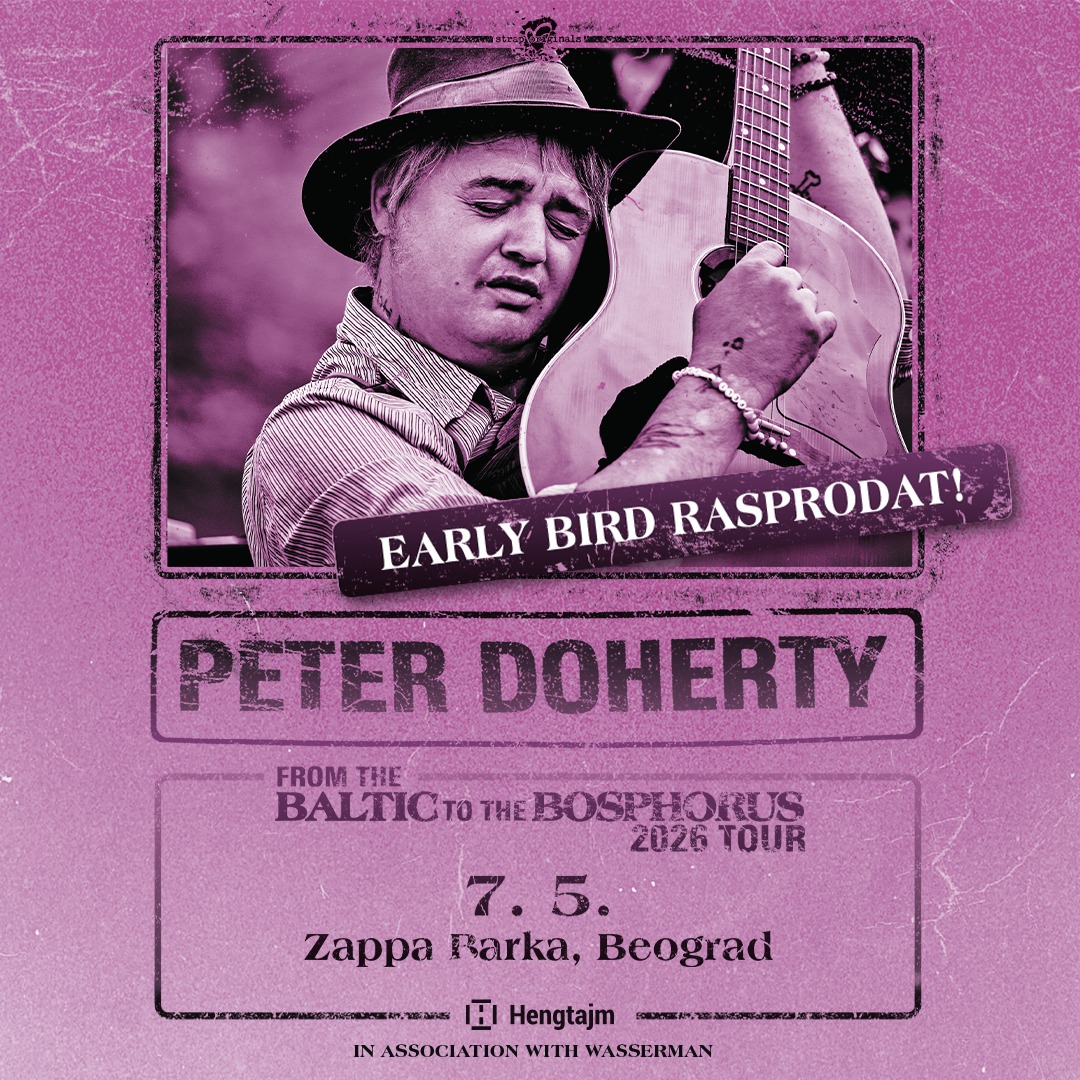 Londonski boem, romantik i jedan od najupečatljivijih autora britanske indie scene, Peter Doherty, 7. maja 2026. premijerno stiže u Zappa Barku u sklopu evropske “From the Baltic to the Bosphorus” turneje. Njegov umetnički put, isprepleten krhkim baladama, sirovim rock’n’rollom i životom na ivici (više doslovno nego metafora), već je odavno upisan u poglavlje pop-kulturne istorije 21. veka. Ima on to nešto u sebi što svako želi da oseti iz neposredne blizine i uveri se iz prve ruke o kakvoj se jedinstvenoj pojavi radi. Ovo garantovano neće biti jedan od onih koncerata koji se samo odslušaju uz pivo. Early bird ulaznice su rasprodate za samo jedan dan. Pretprodajna cena ulaznica je 4400 dinara, dok će na dan koncerta, ako ih ostane, ulaznice koštati 4900 dinara. Hard copy ulaznice uskoro će biti dostupne u Katakombe baru (Knez Miletina 45, Dorćol) i u Zappa Baru (Kralja Petra 41).