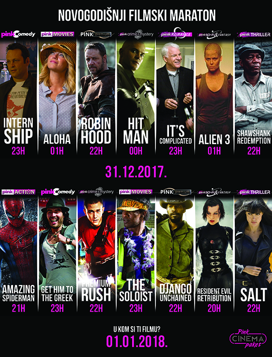 Zbog upravo te potrebe za filmskim sadržajem, Pink Cinema paket, koji obuhvata čak 13 žanrovski profilisanih kanala, pravo je utočište za sve filmofile tokom cele godine. Kako je u vreme praznika, slobodnog vremena više, pa i želje za dobrim kinematografskim ostvarenjima , na filmskim kanalima Pink Cinema paketa moćićemo da pratimo neke od najnovijih, ali i najbolje ocenjenih filmova američke produkcije.