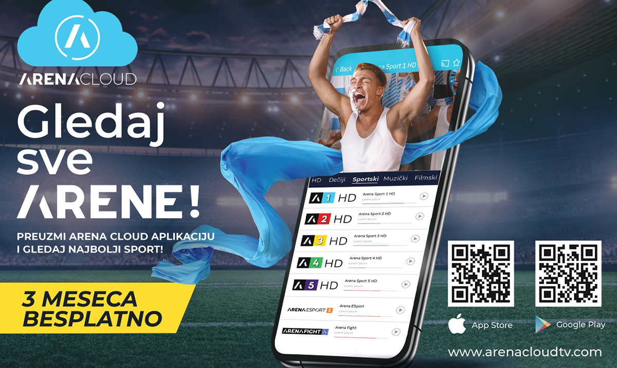 Svi Arena Sport kanali, zajedno sa preko 60 dodatnih TV programa, od sada će biti dostupni svim korisnicima u Srbiji, Sloveniji, Hrvatskoj, BiH, Crnoj Gori i Severnoj Makedoniji putem nove aplikacije za pametne uređaje – Arena Cloud. Kao „rešenje za sve Arene“, aplikacija korisnicima nudi ekskluzivan sadržaj, kompletnu ponudu TV kanala Arena Channels Group, kao i sve serije u produkciji Telekoma Srbija i to potpuno besplatno u prva tri meseca korišćenja i bez ugovorne obaveze.