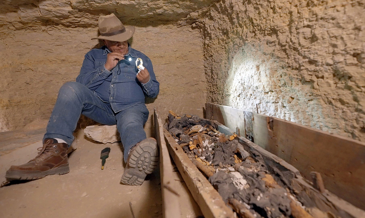 U prvoj epizodi upoznajemo Zahija Havasa na drevnoj nekropoli u Sakari, južno od Kaira, na čijem iskopavanju radi već nekoliko decenija. Tu se nada da će otkriti Imhotepovu grobnicu. Sa svojim timom, Havas će iskopati čudesne grobnice, kao i mnoge tajne egipatskih mumija koje one sadrže. U drugoj epizodi pratimo Zahija Havasa dok nastavlja svoju potragu. Ovaj arheolog sada iskopava građevinu pod nazivom Gisr El-Mudir u podnožju stepenaste piramide. Njegovi timovi će otkriti sarkofage koji sadrže misteriozne mumije – uključujući i onu ukrašenu zlatom – kao i bogato oslikane grobnice. Da li će ih ova blaga odvesti do Imhotepa?