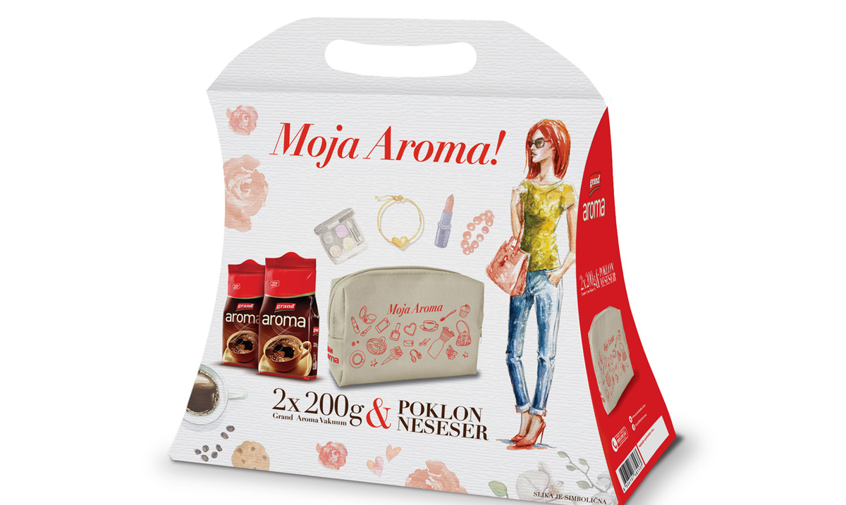 Kupovinom 2x200g Grand Aroma kafe u novom promo setu nalazi se poklon Moja Aroma neseser u kome ćete uvek sa sobom nositi sve što vam je potrebno da budete svoji i osvajate prepoznatljivim ukusom.