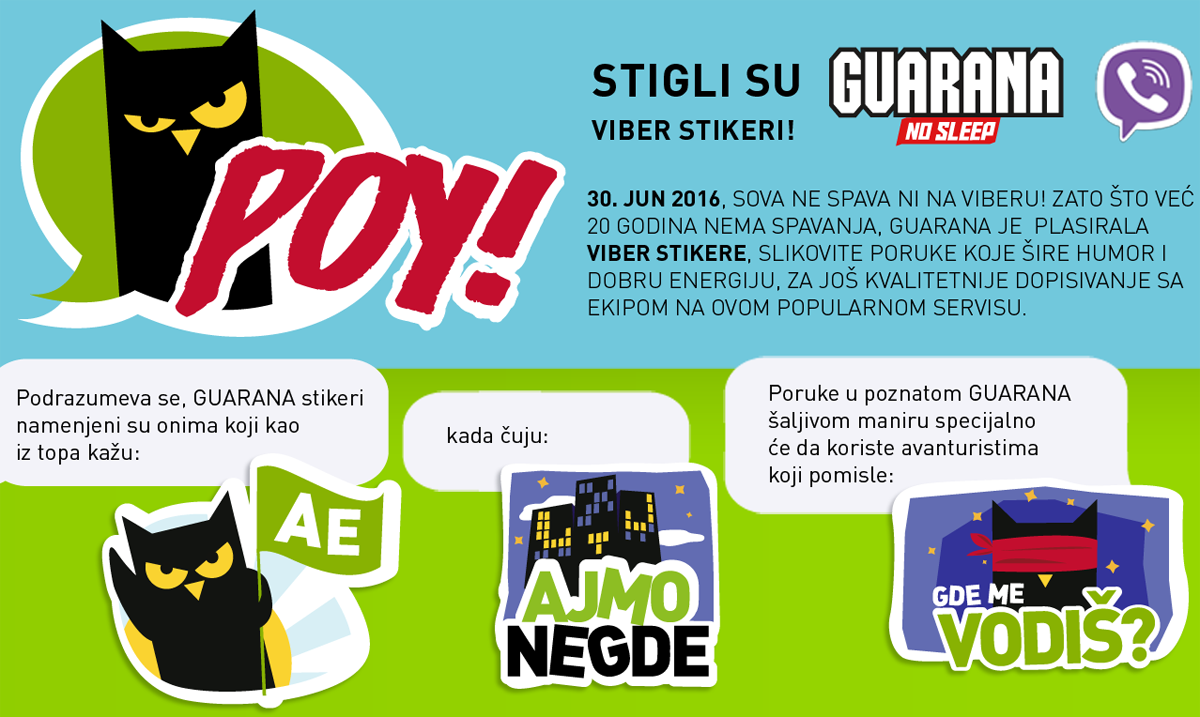 Povodom dvadesetog rođendana, brend Guarana i čuvena sova rešili su da obraduju sve svoje verne obožavaoce beskrajno simpatičnim i nadasve energičnim Viber stikerima.