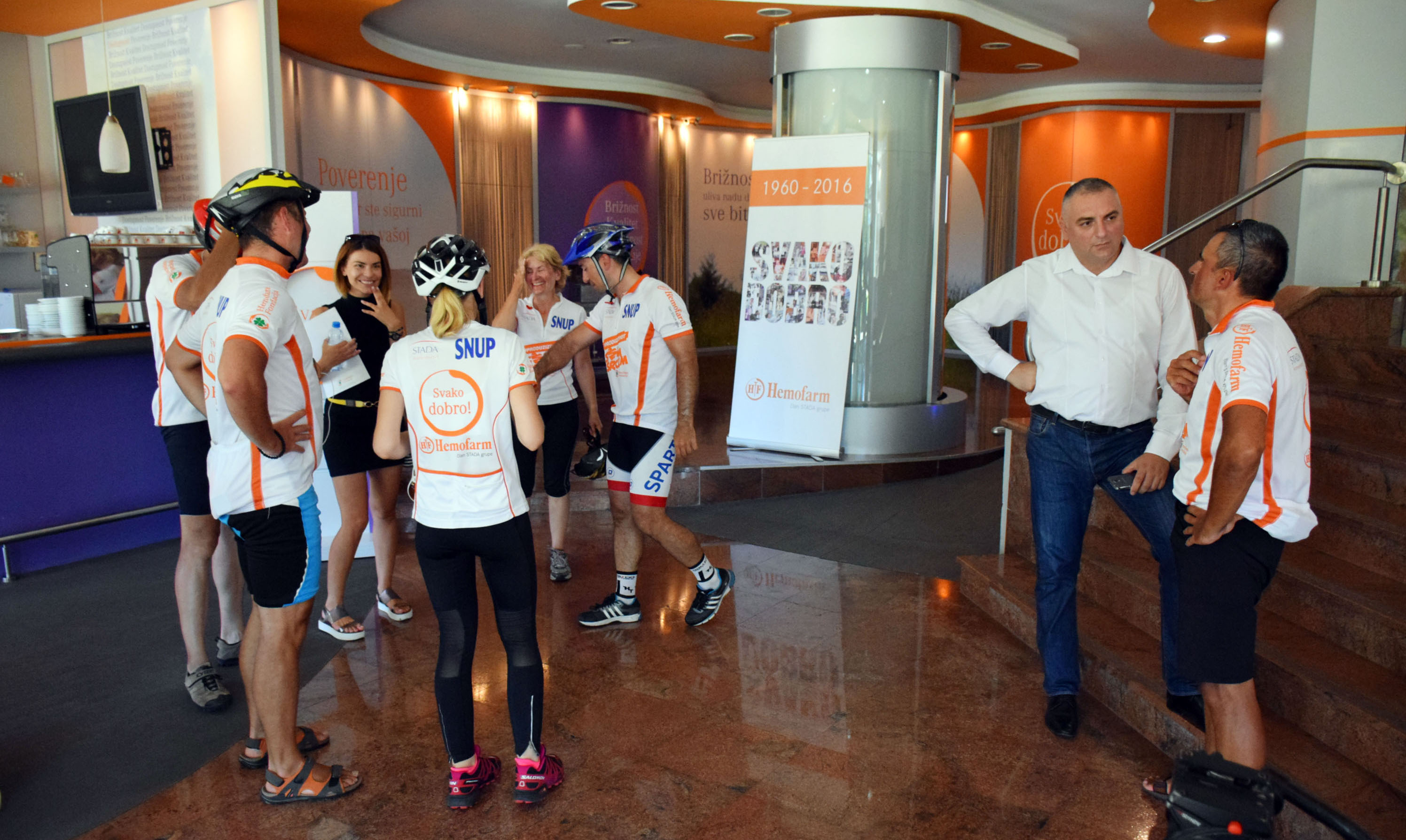 „Ponosni smo što ste putevima četiri zemlje proneli poruku života koja je, sigurni smo, ostavila jak utisak na sve ljude koje ste sretali. Hvala vam što ste bili vesnici humanosti i naši najbolji ambasadori na evropskoj biciklističkoj ruti, rekao je Milan Smoljanović, direktor Sektora opštih poslova Hemofarma na dočeku ispred sedišta kompanije.