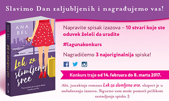 Spisak podelite na nekoj od društvenih mreža – na Fejsbuku, Instagramu ili Tviteru sa haštagom #lagunakonkurs.
