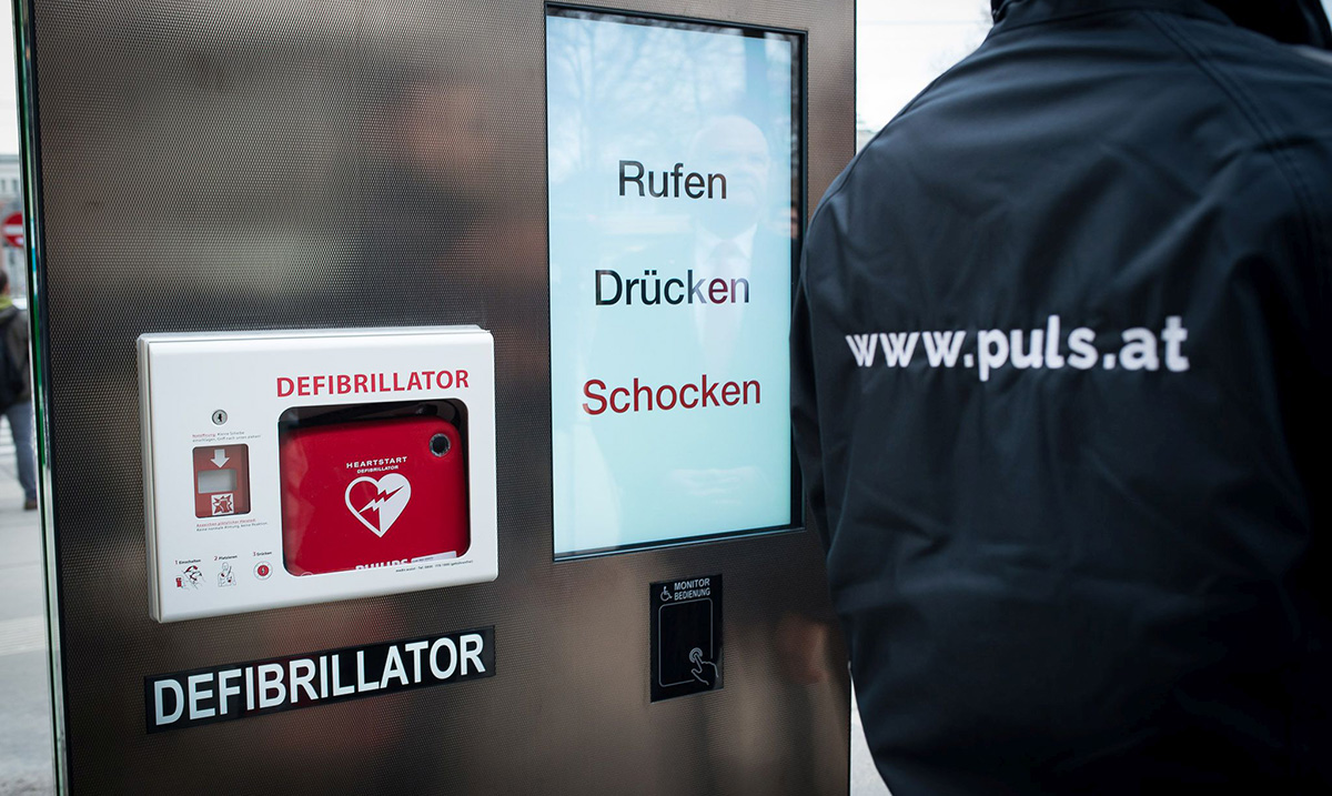 Značaj i efikasnost aparata sa defibrilatorima dokazao je slučaj uspešne reanimacije jednog građanina u centru Beča pomoću javnog defibrilatora. U ovakvim situacijama vreme koje je potrebno da hitna pomoć stigne na lice mesta može da znači razliku između života i smrti. Projekat uvođenja javnih defibrilatora sprovode udruženje „Puls“ i medijska kompanija „Gewista“ koja je specijalizovana za marketinška rešenja na otvorenom, a sve se odvija u saradnji sa Medicinskim fakultetom u Beču.