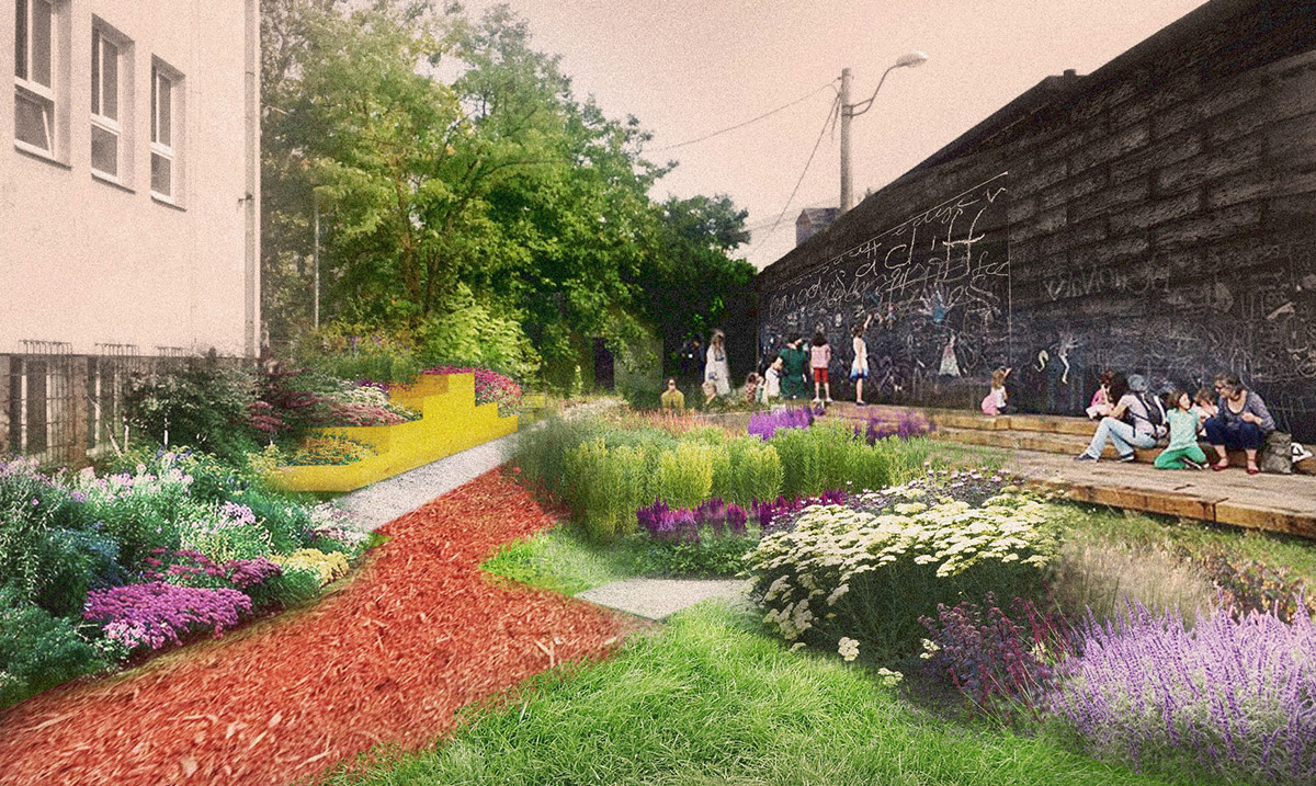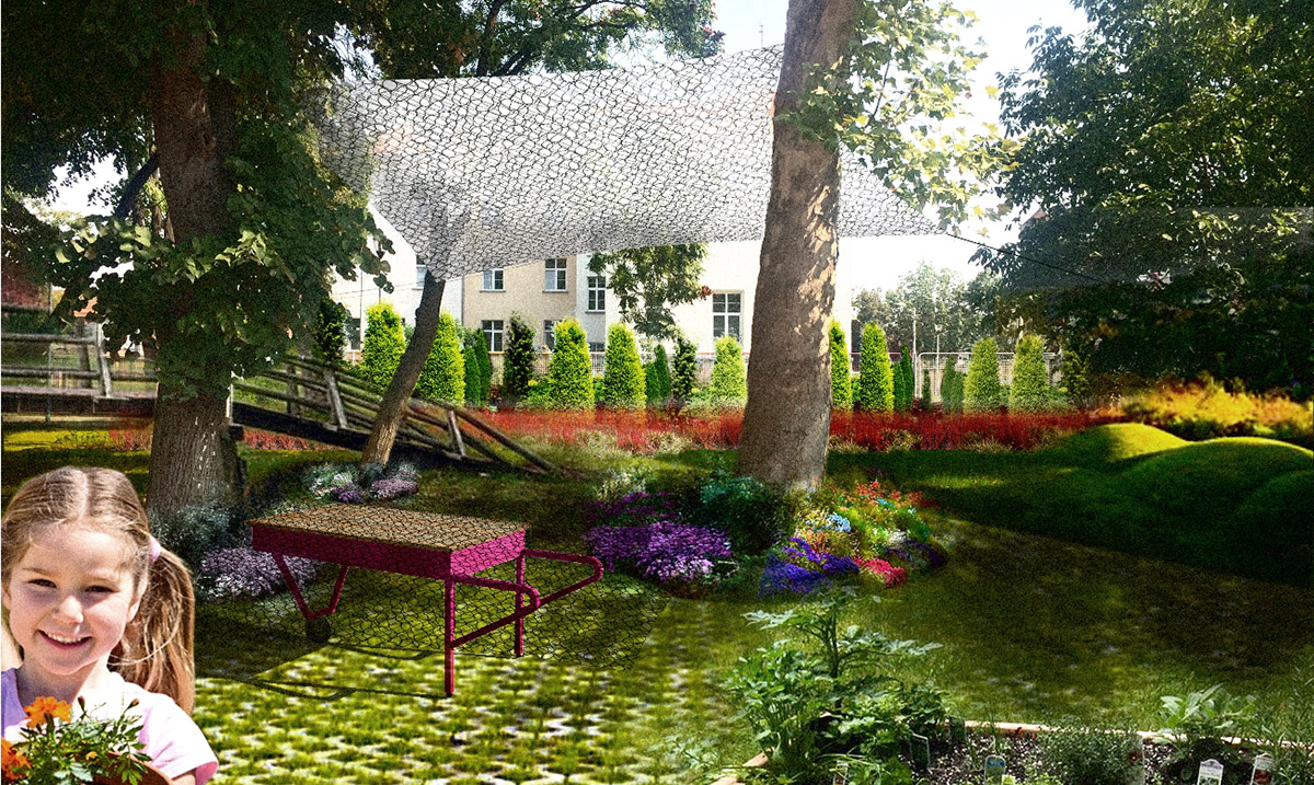 Projekat uređenja dvorišta razvijen je u saradnji projektnog tima UG Beogradski festival cveća zajedno sa nastavnim i stručnim osobljem škole kako bi zadovoljio specifične potrebe učenika koji je pohađaju i u njoj borave.