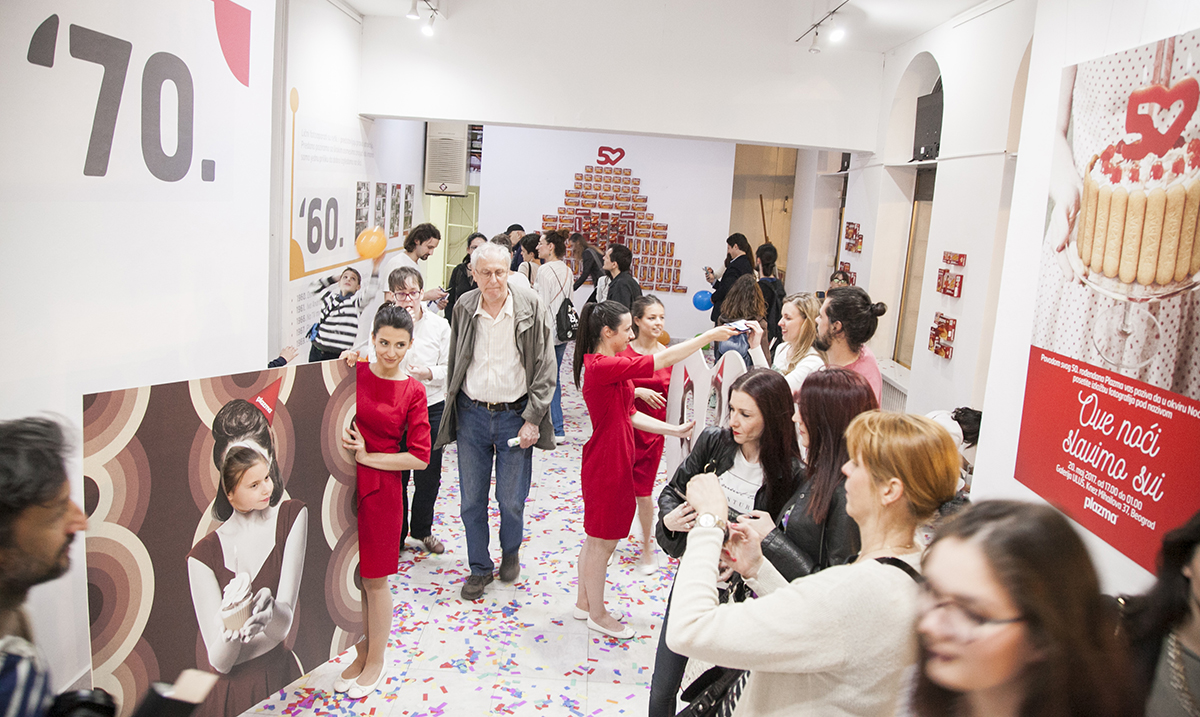 U galeriji ULUS u Knez Mihailovoj posetioci su 20. maja imali priliku da uživaju u nasmejanim licima sa fotografija koje su prikazivale kako su generacije od šezdesetih godina prošlog veka do danas proslavljale rođendane, naravno, uz Plazma podršku! Uz melodije evergrin hitova šezdesetih i sedamdesetih godina uz koje su na zabavama plesali naše bake, deke i roditelji, Plazma se osvrnula i na modu koja oslikava te epohe. Prolazeći kroz devedesete, i prisećajući se nekih od najpopularnijih recepata za torte iz tog perioda, Plazma nas je uvela u dvehiljadite i poželela dobrodošlicu na 50. Plazma rođendan!