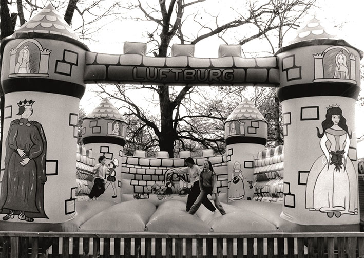U Beču je pre 40 godina nastao prvi vazdušni dvorac za decu. Preduzetnica Elizabet Kolarik imala je ideju da jednu od omiljenih dečijih aktivnosti, skakanje po krevetu, pretvori u pravu zabavu za decu. Nakon rođenja njene ćerke Marijane kontaktirala je proizvođača balona na vruć vazduh iz Engleske sa idejom da joj sašije vazdušni dušek za skakanje u obliku dvorca.