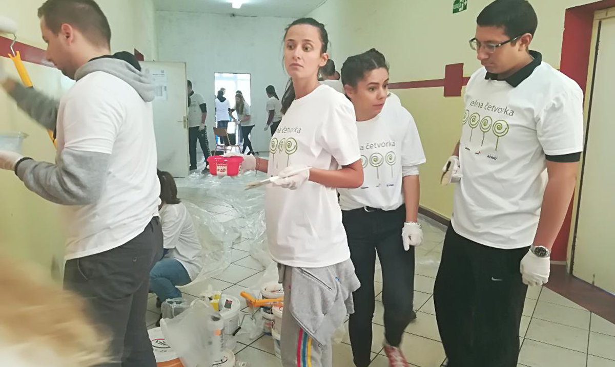 Kabinet je uredila i opremila „Velika četvorka“, odnosno zaposleni u najvećim svetskim revizorsko-konsultantskim kućama KPMG, Deloitte, PricewaterhouseCoopers i Ernst & Young. Više od 100 volontera je danas učestvovalo u krečenju i opremanju kabineta, još dve učionice škole, hodnika I farbanju klupa u dvorištu.