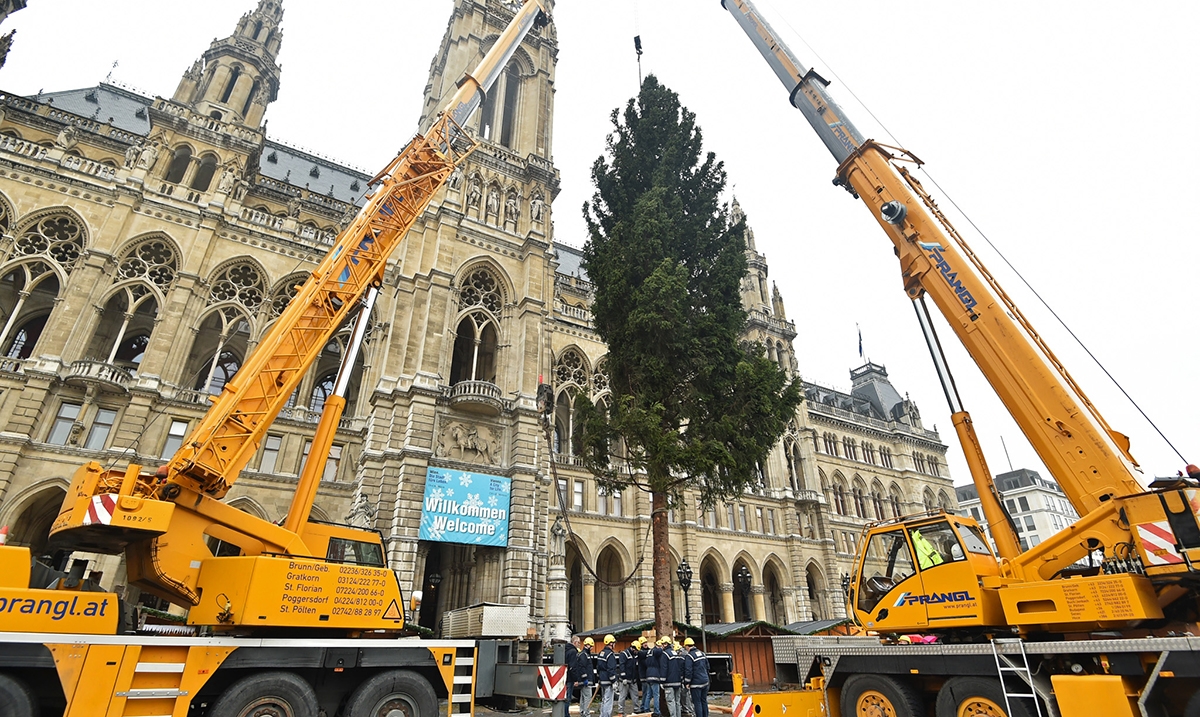 Svake godine jedna austrijska pokrajina glavnom gradu Austrije pokloni Božićnu jelku koja krasi trg ispred gradske skupštine. Ove godine smreka visoka 25 metara i stara oko 100 godina stigla je iz pokrajine Forarlberg i već je postavljena ispred skupštine grada.