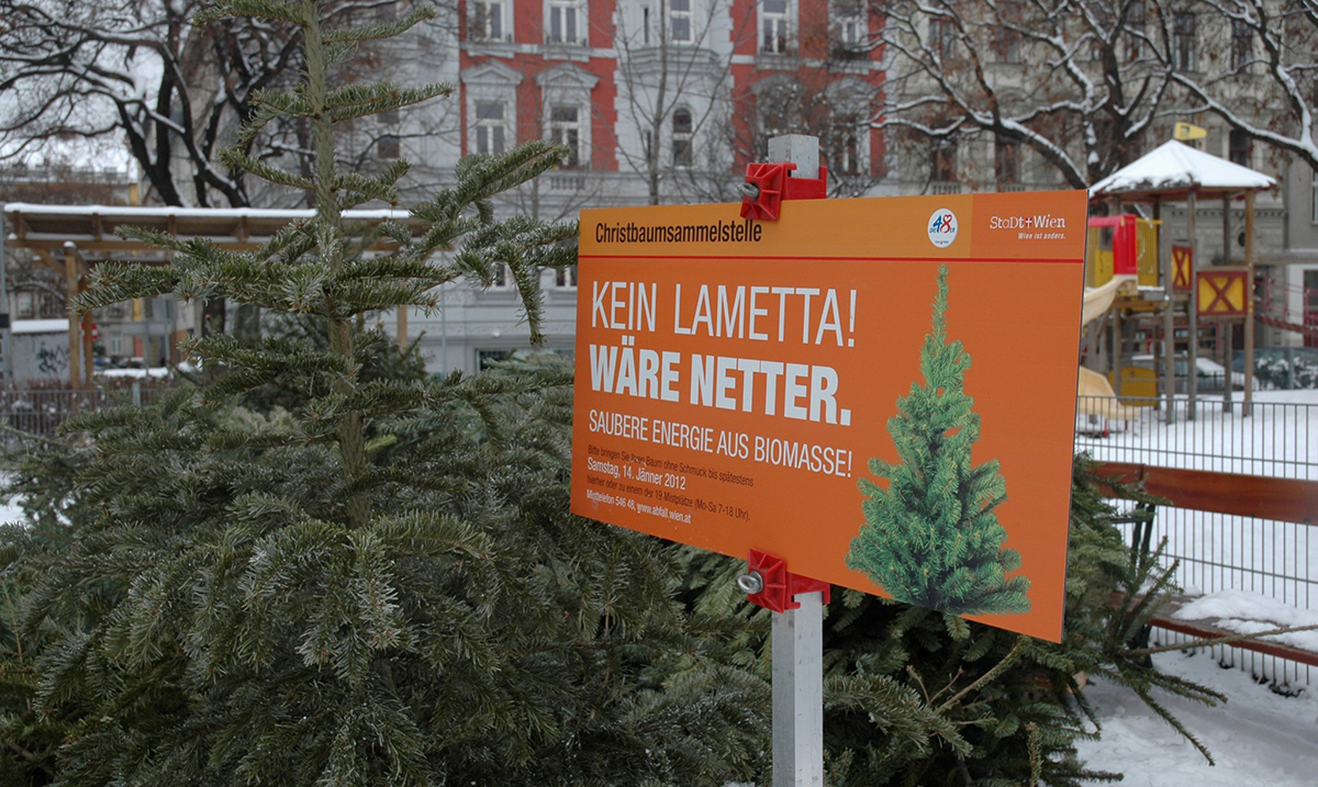 U glavnom gradu Austrije novogodišnje jelke koje su odslužile svoje se termički obrađuju a od njih stvara struja i toplotna energija. Prošle godine je oko 700 tona tj. 160.000 jelki ostavljeno na sabirnim mestima. Proizvedena energija (više od 1.700 MWh) bila je dovoljna da se 975 domaćinstava jedan mesec snabde strujom i 2.280 domaćinstava sa toplotnom energijom.
