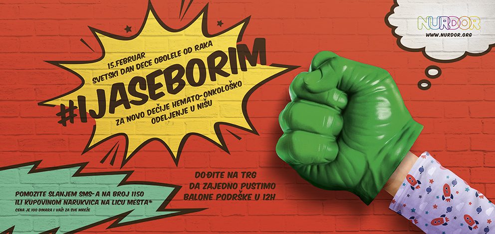 NURDOR već dve godine sprovodi kampanju „I ja se borim“ koja ima za cilj veću vidljivost problema malignih oboljenja kod dece i postizanje većeg senzibiliteta društvene zajednice za ovo pitanje. Kroz kampanju podstičemo kako pojedince, tako i kompanije na aktivno uzimanje učešća u projektima kojima zajednički olakšavamo hrabrim mališanima i njihovim roditeljima proces lečenja.