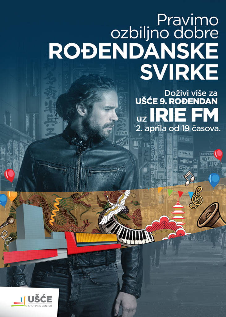 Najbolji mladi bend po oceni udruženja muzičara Džeza, zabavne i Rok muzike Srbije – „Irie FM“ će u ponedeljak 2. aprila od 19 časova na Centralnom trgu UŠĆE Shopping Centera, napraviti uvertiru za proslavu devetog rođendana najvećeg šoping mola u Srbiji, koja će trajati punih mesec dana.