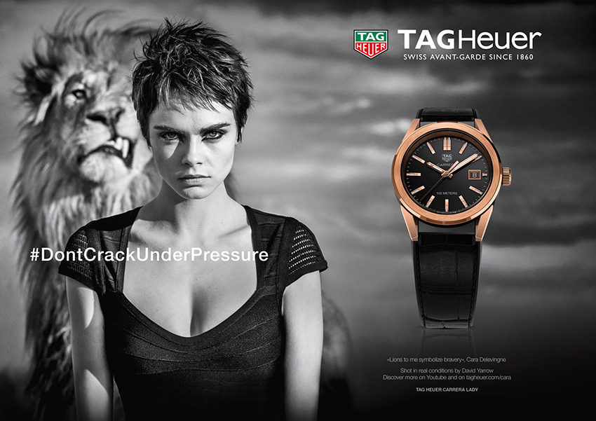 U prisustvu ovih najmoćnijih kraljeva džungle, Kara koja je ambasador brenda TAG Heuer, snimila je najnoviju kampanju u Južnoj Africi koju potpisuje umetnički fotograf Dejvid Jarou.
