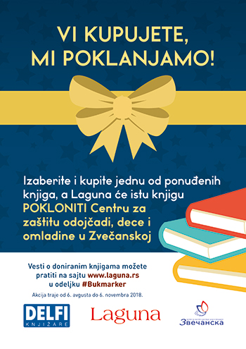 Zahvaljujući sjajnoj humanitarnoj akciji koju su pokrenuli izdavačka kuća Laguna i knjižare Delfi, „VI KUPUJETE, MI POKLANJAMO“, biblioteke Svratišta za decu i Fondacije SOS dečja sela Srbije postale su bogatije za preko dve i po hiljade sjajnih knjiga za decu.