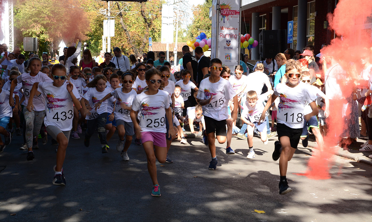 Dečji program sa zagrevanjem počinje nešto pre pola deset, kada počinje trka na 200m za najmlađe, decu do predškolskog uzrasta. Posle njih odmah trčaće oni malo stariji, deca predškolskog uzrasta do 10 godina i pretrčati stazu dugačku 500m. Svaki mali i veliki trkač koji uspešno obojen završi trku dobiće medalju, a troje najbržih iz grupe najmlađih, i troje najbržih predškolaca dobiće vredne nagrade koje su pripremili partneri trke. Zlatni sponzor trke kompanija Tikkurila nagradiće osim pobednika u svima kategorijama i najmlađeg, najstarijeg i najveselijeg takmičara.
