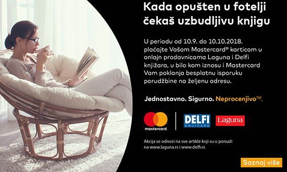 Upravo iz tog razloga, kompanija Mastercard, izdavačka kuća Laguna i knjižare Delfi od 10. septembra pokreću kampanju u okviru koje svi korisnici Mastercarda koji knjige i prateće programe na veb sajtovima www.laguna.rs i www.delfi.rs plate svojim Mastercard i Maestro karticama na poklon dobijaju besplatnu dostavu, bez obzira na plaćeni iznos. Kampanja će trajati do 10. oktobra, a sam proces kupovine i plaćanja se odvija u samo nekoliko koraka, tako da čekanje u tradicionalnim septembarskim redovima možete zaobići uz svega nekoliko klikova. Na taj način svi naslovi stižu direktno na vašu adresu, a ušteđeno vreme možete iskoristiti da dovršite čitanje knjige koju ste vratili sa odmora.