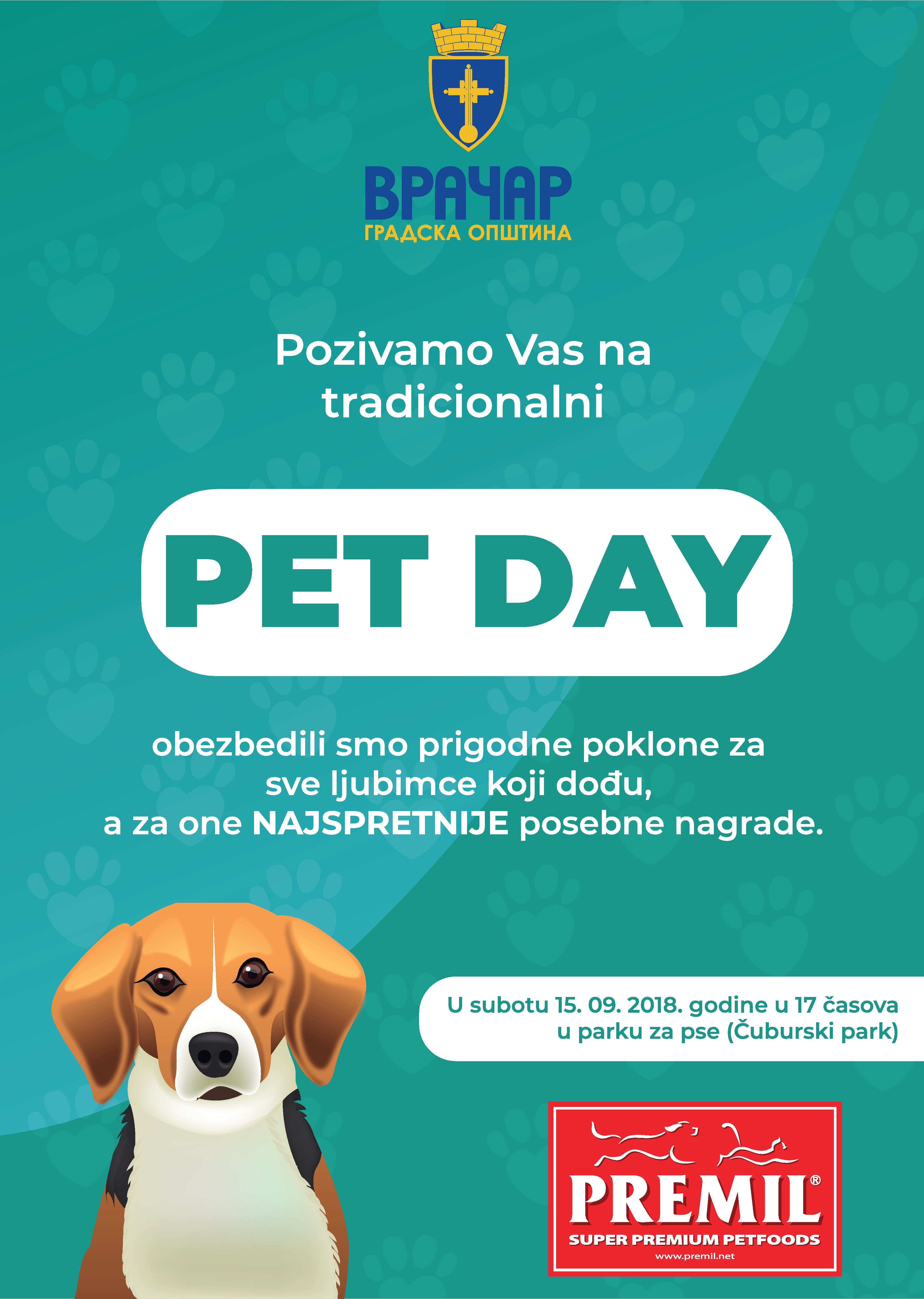 U subotu 15. septembra od 17 do 19 časova, u Čuburskom parku biće održana tradicionalna manifestacija, “Pet day,” u cilju promocije koncepta odgovornog vlasništva kućnih ljubimaca. Dovedite svoje krznene prijatelje da se igraju, laju, trče i uživaju u ovom veselom danu. Opština Vračar obezbedila je prigodne poklone za sve ljubimce koji dođu kao i posebne nagrade za one najspretnije.