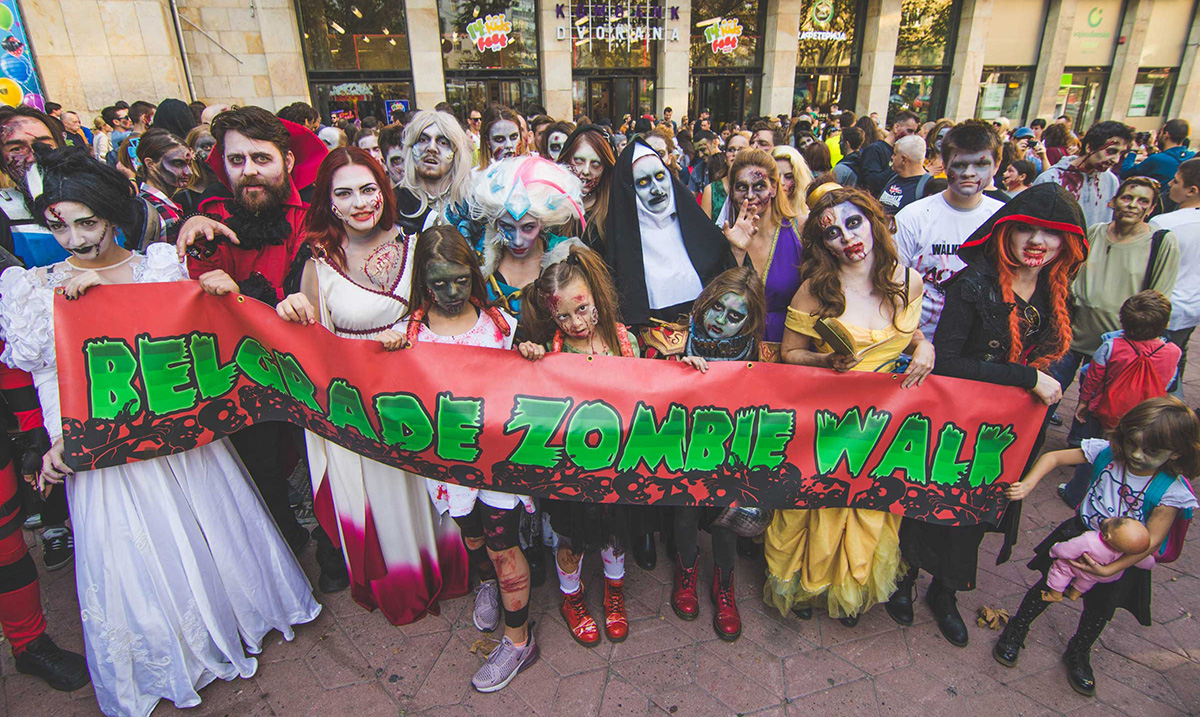 Više stotina građana prerušenih u zombije juče je prošetalo centralnim beogradskim ulicama u Zombi šetnji koja prethodi Festivalu srpskog filma fantastike čiji je integralni deo, istovremeno promovišući jedan od sastavnih delova ove vrste filmova – šminkanje i izradu vizuelnih efekata.