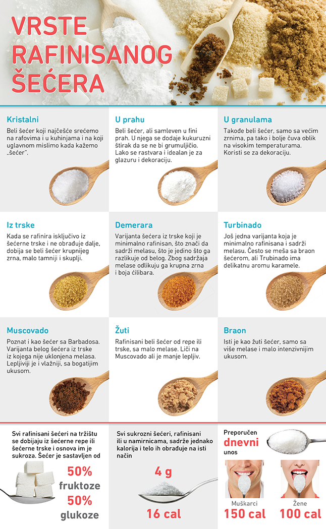 Šećeri se nalaze prirodno u voću, povrću, mleku, medu… Ali ih ima i u gotovo svim proizvodima koje kupujemo u supermarketu. Pored slatkoće obezbeđuju ukus, teksturu i boju i produžuju rok trajanja hrani i piću. Budući da je šećer prisutan u svakodnevnoj ishrani, dobro je poznavati vrste, strukturu ali i preporučeni dnevni unos, kako bismo na najbolji mogući način postigli balans u ishrani.