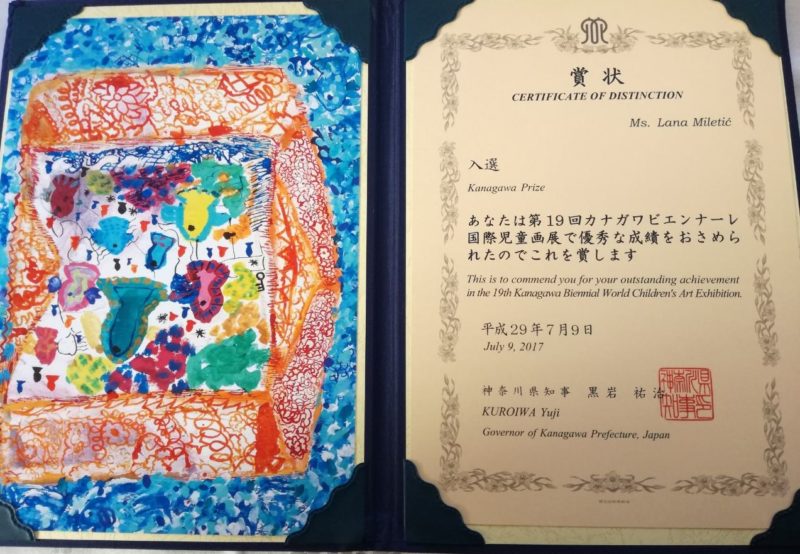 Lana je tokom prethodnih godina već osvajala nagrade, među kojima je Specijalna nagrada na 19. svetskom bijenalu dečjeg umetničkog stvaralaštva u Kanagavi u Japanu 2017, a njen rad je izlagan širom Japana sve do marta ove godine. O kakvom je uspehu reč govori podatak da je Lanin crtež izabran medju 25,000 radova iz 87 zemalja sveta!