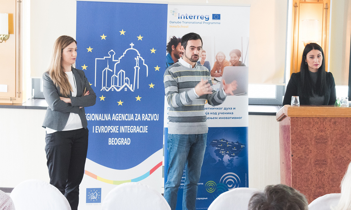 Direktorka Regionalne agencija za razvoj i evropske integracije Beograd (RAREI Beograd), Snežana Radinović, svečano je otvorila uvodnu konferenciju projekta InnoSchool. Projekat InnoSchool se finansira kroz Intereg Dunavski transnacionalni program i realizuje se u devet država Dunavskog regiona: Češkoj, Slovačkoj, Austriji, Mađarskoj, Rumuniji, Bugarskoj, Bosni i Hercegovini, Moldaviji i Srbiji. Fokus projekta je uvođenje sistemskih promena koje su neophodne za jačanje preduzetničke kulture i povećano angažovanje učenika srednjih škola u oblasti socijalnih inovacija i preduzetništva.