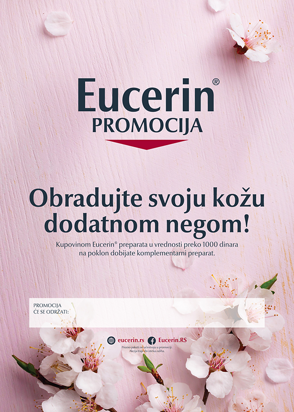 Do kraja marta, u partner apotekama širom Srbije Eucerin® organizuje promocije tokom kojih, uz kupovinu Eucerin® preparata u vrednosti preko 1000 dinara, kao poklon dobijate komplementarni preparat koji će upotpuniti negu vaše kože.