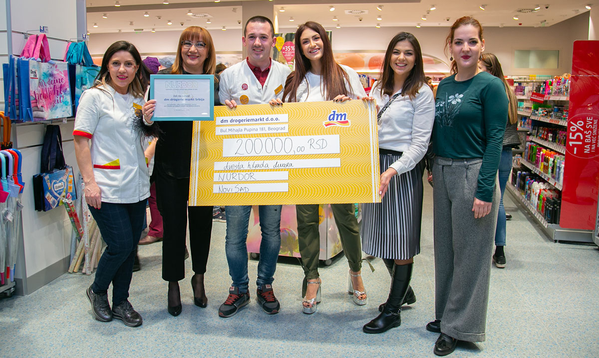 Kompanija dm ponovo je pokazala svoju posvećenost zajednici u kojoj posluje, pa je u periodu od 18 do 19 časova, sav prihod sa kase na kojoj je radila influenserka Ena Luna doniran Nacionalnom udruženju roditelja dece obolele od raka – NURDOR. Tako je za potrebe ove organizacije za samo sat vremena prikupljeno čak 200.000 RSD.