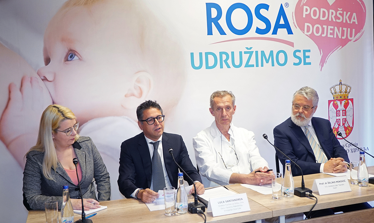 ,,Tokom prethodna dva projekta, susretali smo se sa mnogim roditeljima, prvenstveno mamama koje su i same ukazale da je podrška dojenju potrebna. Zato smo odlučili da sa Ministarstvom zdravlja pružimo kontinuiranu podršku i to u samim porodilištima, kroz novi projekat, otvarajući Rosa sobu za podršku dojenju. Rosa je oduvek oduvek bila tu za bebe i roditelje, i ovom prilikom želimo da zahvalimo i građanima koji su kao i do sada prepoznali značaj i doprineli da Rosa podrži ono što je važno – zdravlje čitave porodice“, rekao je Luca Santandrea, direktor franšize kompanija Coca-Cola Srbija.
