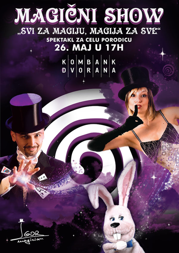 Porodični spektakl, magični show „Svi za magiju , magija za sve“ biće održan 26. maja u 17h u Kombank Dvorani. U mađioničarskoj predstavi Igora Trifunova i njegove magične družine publika će videti i doživeti najbolje iluzije koje će majstori svog zanata zajedno izvesti na Velikoj sceni.