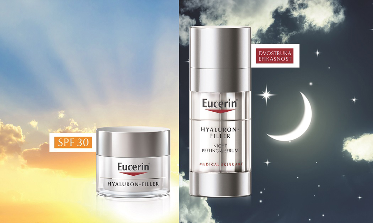 Upravo takav, savršen, par su Eucerin® Hyaluron–Filler Noćni Intezivni Serum i Eucerin® Hyaluron–Filler Dnevna krema SPF 30. Uz upotrebu ova dva preparata rutina nege kraće traje, a koži je, dok vi spavate i obavljate svoje dnevne obaveze, obezbeđena nega koja prati njen ritam i daje joj izgled kakav priželjkujete.