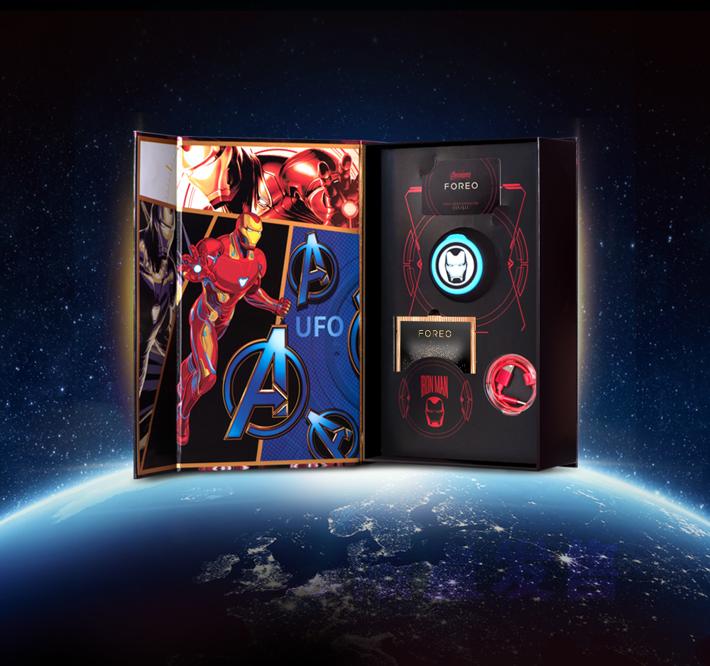 Ovaj beauty-tech brend poznat po inovacijama, vrhunskoj tehnologiji i atraktivnom dizajnu, u saradnji sa gigantom stripa i filmske industrije, kreirao je beauty uređaj godine, koji je pun pogodak za svakog fana i super hi-tech rešenje za ultimativnu negu kože lica koja kao da nam stiže iz daleke galaksije. U ovoj pravoj intergalaktičkoj saradnji sa Marvelom, limitirana serija UFO Iron Man predstavlja must-have za svakog istinskog fana i sadrži do sada neviđeni UFO uređaj u crnoj boji, sa luksuznim, pametnim maskama za lice Iron Man i USB kablom Toni Stark u crvenoj boji.