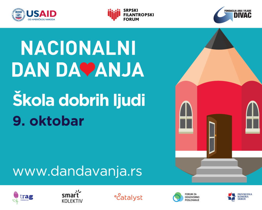 Osnovne škole i školarci biće glavni korisnici donacije povodom Nacionalnog dana davanja, koji će ove godine biti obeležen 9. oktobra. Sve donacije prikupljene tokom ove kampanje biće upotrebljene za nabavku savremenih učila za đake u više od 60 škola u 30 opština širom Srbije. Osnovne škole koje su obuhvaćene kampanjom, biće opremljene novim pametnim tablama, laptop računarima, projektorima i učilima za najmlađe, uključujući i „bee bot“ robote.