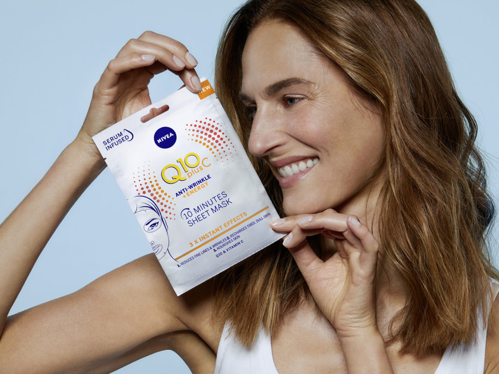 Moćna kombinacija 2 antioksidansa – koenzima Q10 i vitamina C – za savršen tretman koji koži vraća energiju. Ova formulacija vraća svežinu koži koja deluje umorno i beživotno. Odvojite 10 minuta za opuštanje i sačekajte da NIVEA Q10 PLUS C 10-minutna maska pruži koži dodatnu dozu energije. NIVEA Q10 Plus C maska natopljena je formulacijom koja sadrži 20ml seruma,  koenzim Q10 i vitamin C. Q10 pospešuje proizvodnju energije u našim ćelijama. Kao antioksidans, ovaj koenzim se bori protiv slobodnih radikala kako unutar tako i van ćelija. Slobodni radikali su supstance koje uzrokuju ćelijska oštećenja i ubrzavaju starenje kože. Sastojci pružaju koži svežinu i energiju i čine je primetno glatkom. Ako želite da održite zdrav izgled kože, koristite sheet masku dva puta nedeljno. Za dodatni osećaj svežine, masku dovoljno je da se maska drži u frižideru pre upotrebe.