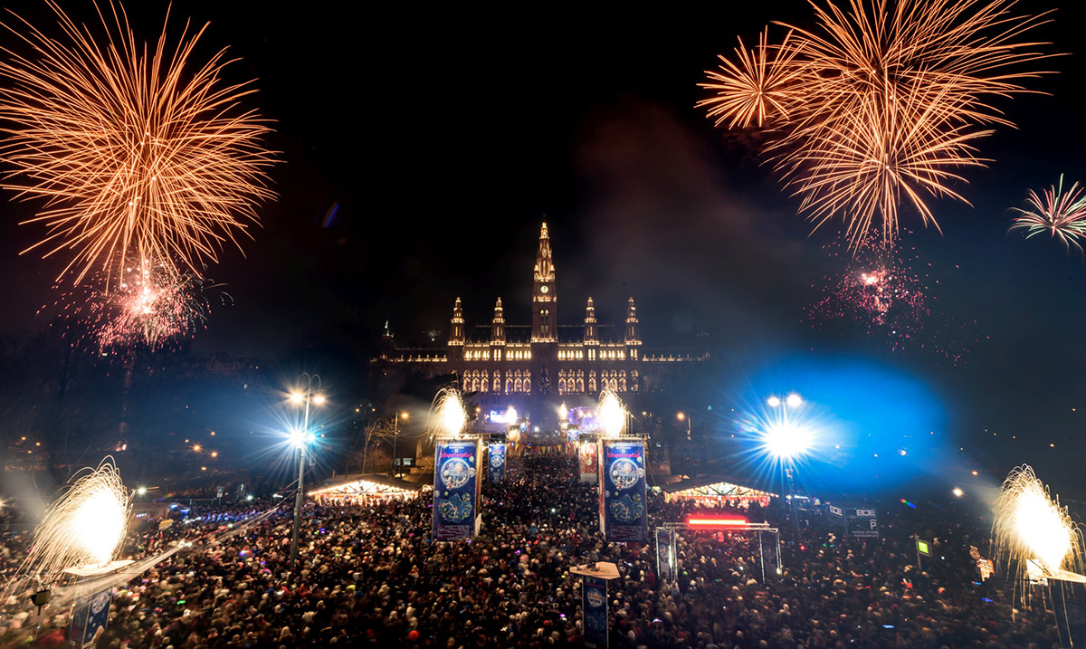 U glavnom gradu Austrije Nova godina se dočekuje u svečanoj, ali opuštenoj atmosferi. Centralno mesto proslave je „Novogodišnja staza“ u Starom gradu. Dobro raspoloženje najavljeno je i na gala-večerima, svečanim balovima, u koncertnim dvoranama, na operskim predstavama, u klubovima ili mondenskim barovima.