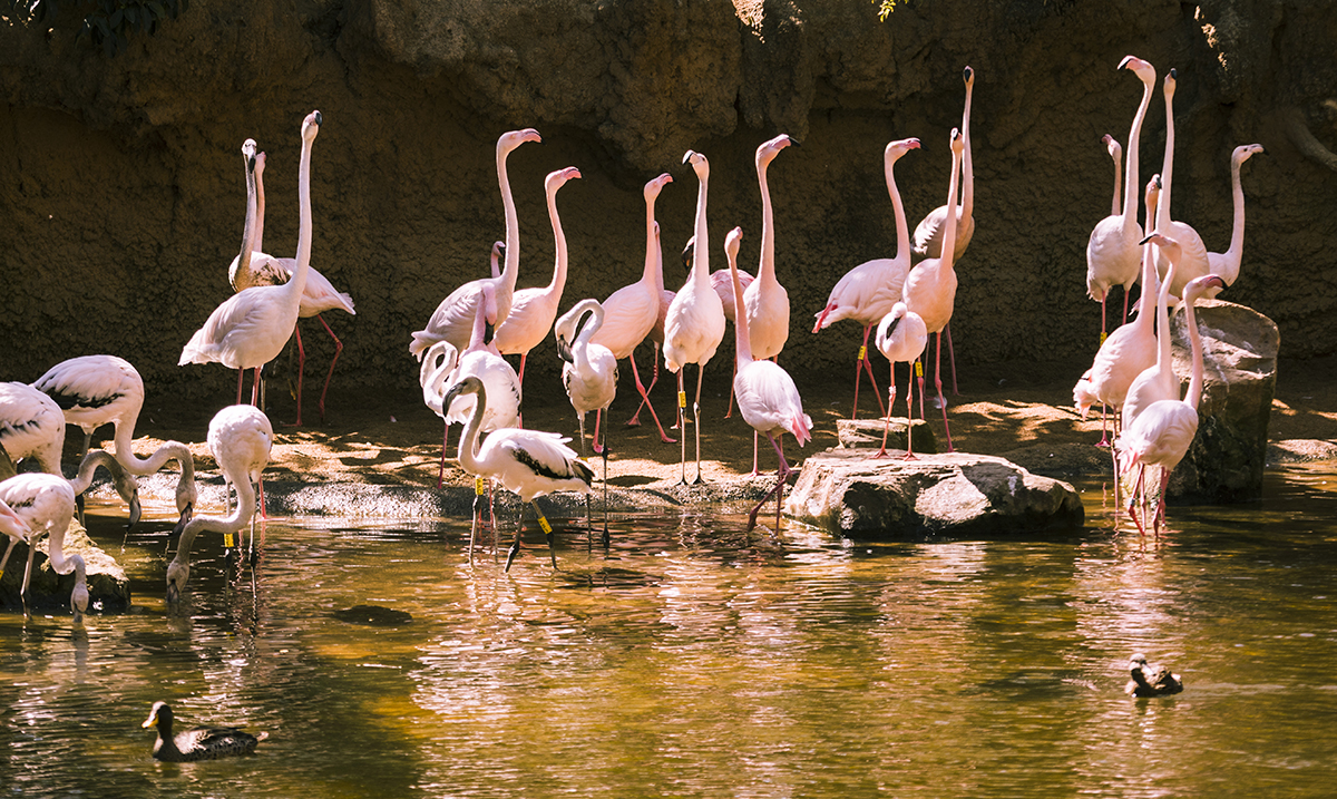 „Jedan od načina za smanjenje stresa za flamingose jeste izbegavanje ptica s kojima ne žive. Ako se jedna ptica previše približi drugoj, koristiće se svojim dugim vratom i kljunom za napad s vremena na vreme kako bi utvrdila da ima duži vrat od druge. Dužina vrata za flamingose je kao merilo prijateljstva“, rekao je Rouz.