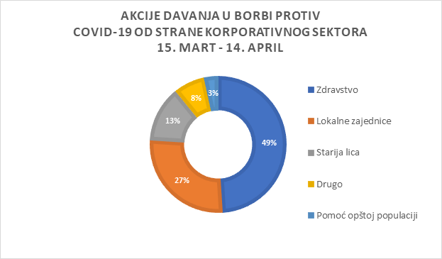Kada su u pitanju primaoci donacija, korporativni sektor je od početka vanrednog stanja podržavao akcije usmerene ka sledećim ciljnim grupama i oblastima: