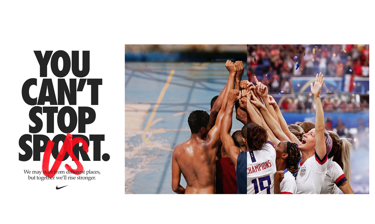 NIKE kampanja „You Can’t Stop Us“ nastala je sa ciljem da svim sportistima, kako profesionalnim, rekreativcima ali i svima onima koji vežbaju iz svoje dnevne sobe širom planete, pruži podršku u pravljenju promena koje će svet napraviti boljim mestom, u vreme kada nam se to čini nemogućim. Kako bi svi sportisti ostali u kondiciji i tokom vanredne situacije, NIKE je sportistima putem aplikacija za treniranje i videa za kućno vežbanje pružio sva potrebna sredstva za siguran trening tokom perioda svetske krize. Tokom maja, video pod nazivom „Never Too Far Down“, u kojem se svetski poznati košarkaš Lebron Džejms našao u ulozi naratora, preneo je jasnu poruku – sport nas uči da snagu pronađemo u sebi samima.
