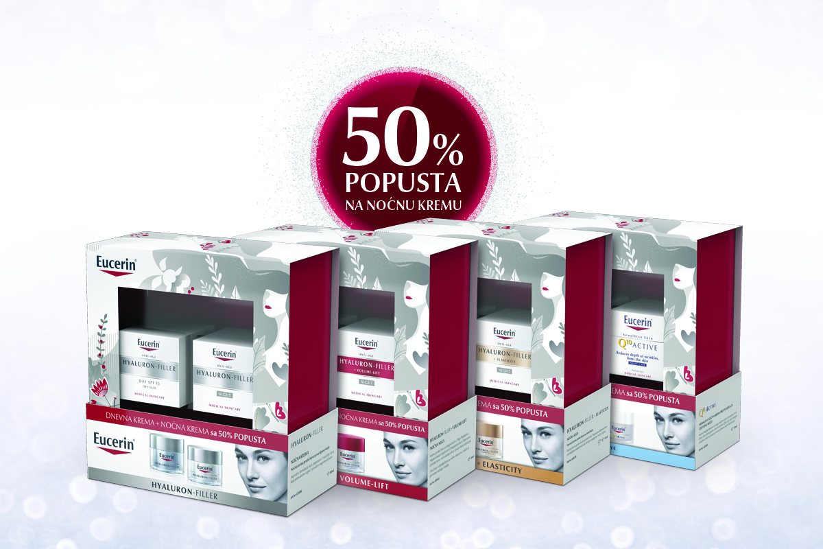 Podršku mladalačkom izgledu vaše kože i vašoj lepoti, Eucerin® pruža i kroz posebne uslove kupovine preparata za anti-age negu – zato sada u bolje snabdevenim apotekama širom Srbije uz dnevnu kremu iz Eucerin® anti-age linija dolazi popust od 50% na kremu za noćnu negu!