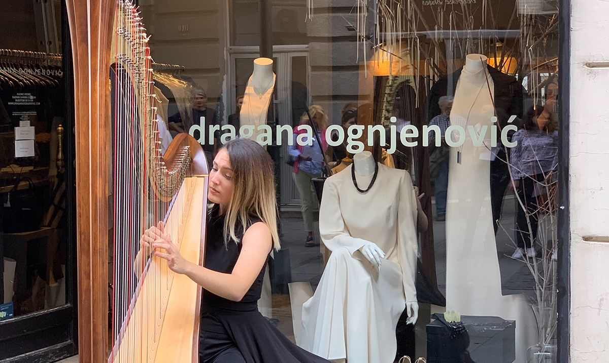 U subotu, trećeg oktobra, sedamnaestogodišnja umetnica, uspešna i perspektivna harfistkinja Irina Pejoska, odsvirala je zahtevan jednosatni koncert na otvorenom, u samom centru grada.
