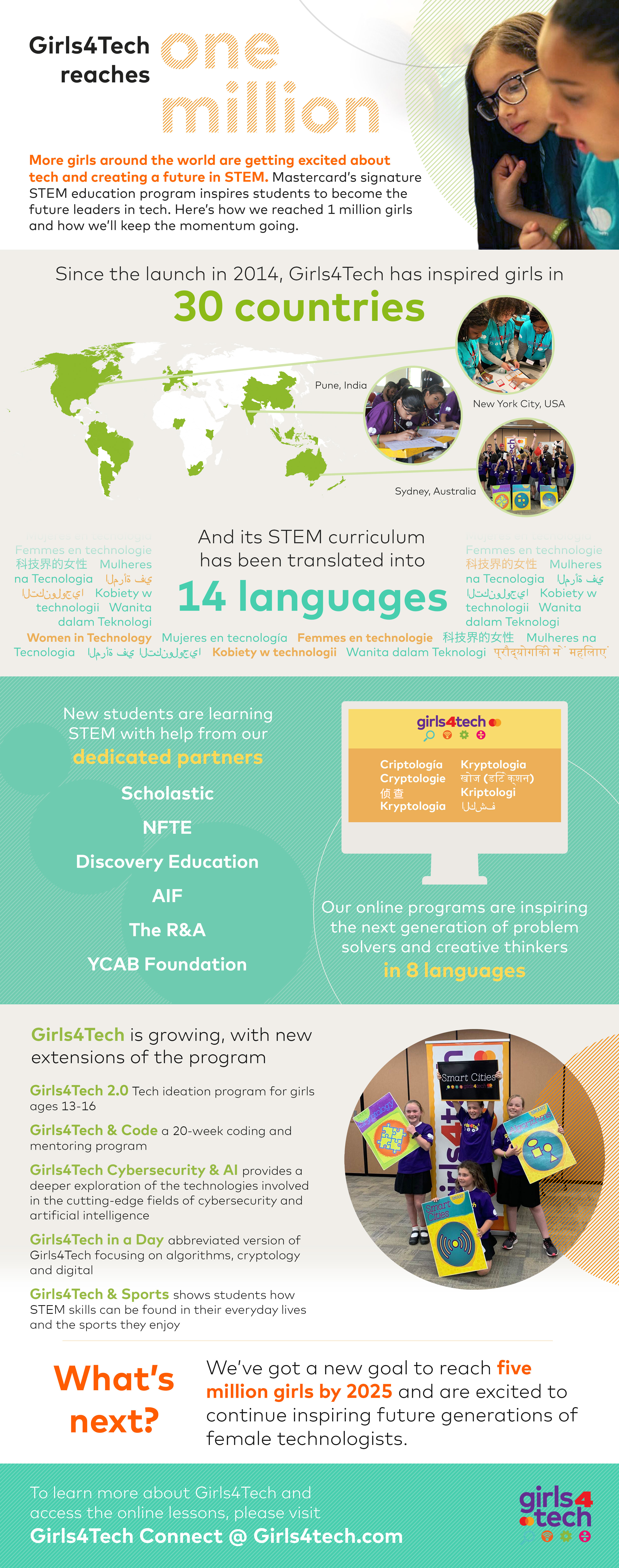 Kompanija Mastercard objavila je da je njihov STEM program, Girls4Tech™, dostigao svoj inicijalni cilj – obrazovanje jednog miliona devojčica. Program sada ima novi i inspirativan cilj – da do 2025. godine uključi pet miliona devojčica.