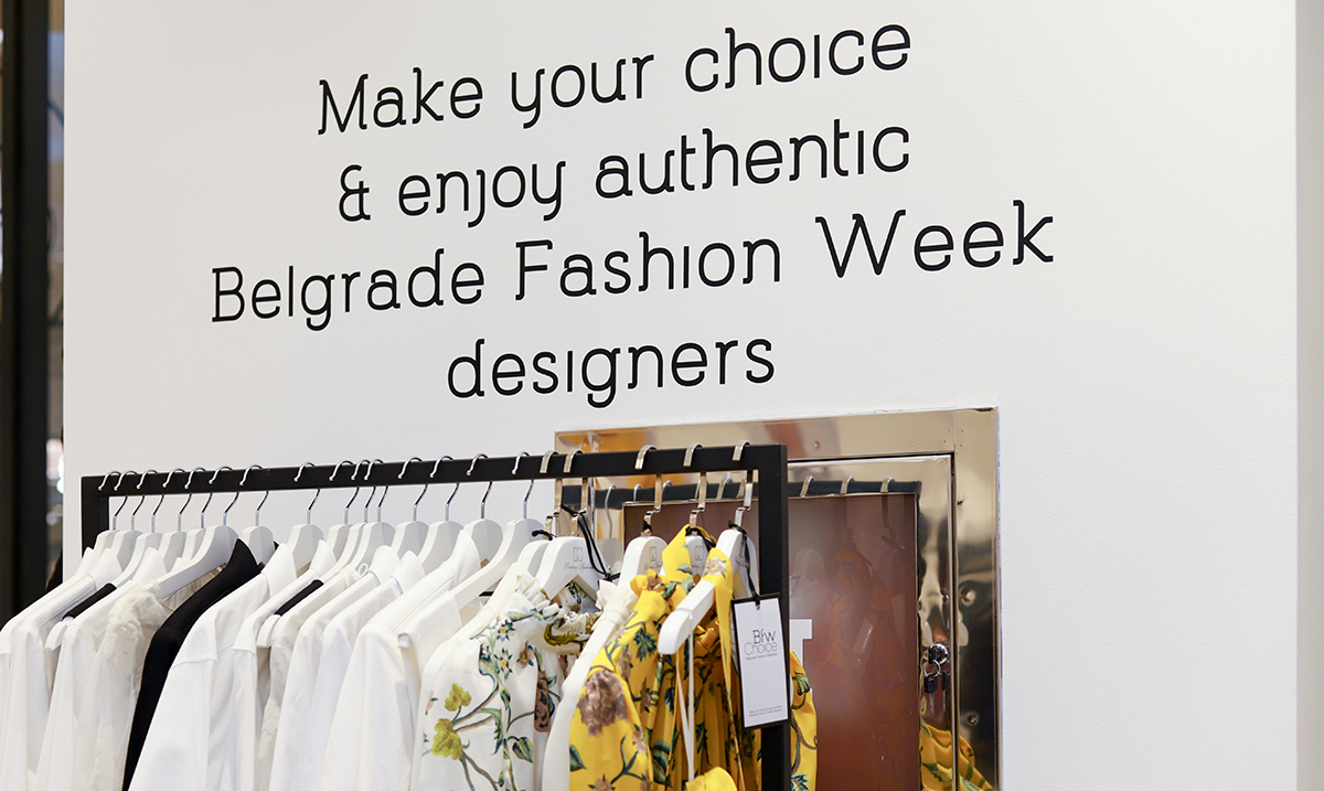 BFW Choice predstavlja novi koncept prodaje baziran na ideji o održivosti razvoja domaće autorske mode. Cilj projekta jeste popularizovanje domaćih samostalnih dizajnera kroz različite Pop Up postavke. Ova izložbeno-prodajna postavka oplemenjena zanimljivim fotografijama sa Beogradske nedelje mode, realizovana je u okviru udruženja dizajnera BFW Design Collective, sa atraktivnim asortimanom i zanimljivim izborom obuće i aksesoara. Ovo je prvi concept store koji je bio otvoren u nekom od beogradskih shopping molova, tako da je stekao veliki broj poklonika koji uživaju i u činjenici da kupovinom proizvoda u BFW CHOICE radnji pružaju podršku radu mladih i samostalnih dizajnera autorske mode.