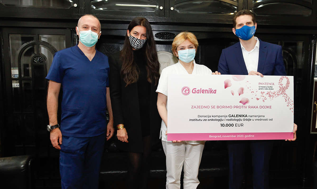 Galenika a.d. organizovala je veliku humanitarnu akciju „Roze oktobar“ povodom obeležavanja međunarodnog Meseca borbe protiv raka dojke ove godine, u okviru koje je donirala 10% prihoda od celokupne prodaje Pantenol krema tokom perioda od mesec dana, a tu sumu kompanija je udvostručila iz sopstvenih sredstava. Ukupan iznos donacije namenjen je nabavci hiruške opreme na Institutu za onkologiju i radiologoiju Srbije, ustanovi koja godišnje ima preko 50.000 pacijenata.