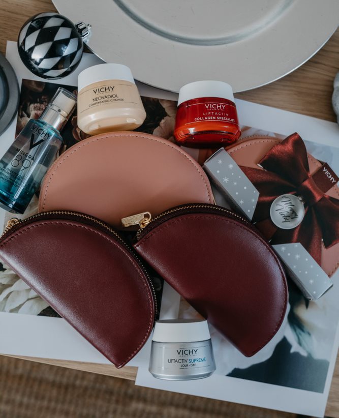 U želji da svim damama unese više nežnosti i inspiracije u praznične dane, Vichy je za sve njih koje se odluče za kupovinu nekog od proizvoda za dnevnu negu kože lica ovog brenda, dobiju na poklon modni novčanik sa uzorcima proizvoda. Ovaj modni neseser može poslužiti i kao torbica za izlazak, koja će se uklopiti u najrazličitije kreacije, a dolazi u dve boje – zagasitoj, zimskoj bordo namenjenoj damama i puder roze za one koji preferiraju nežnije nijanse.