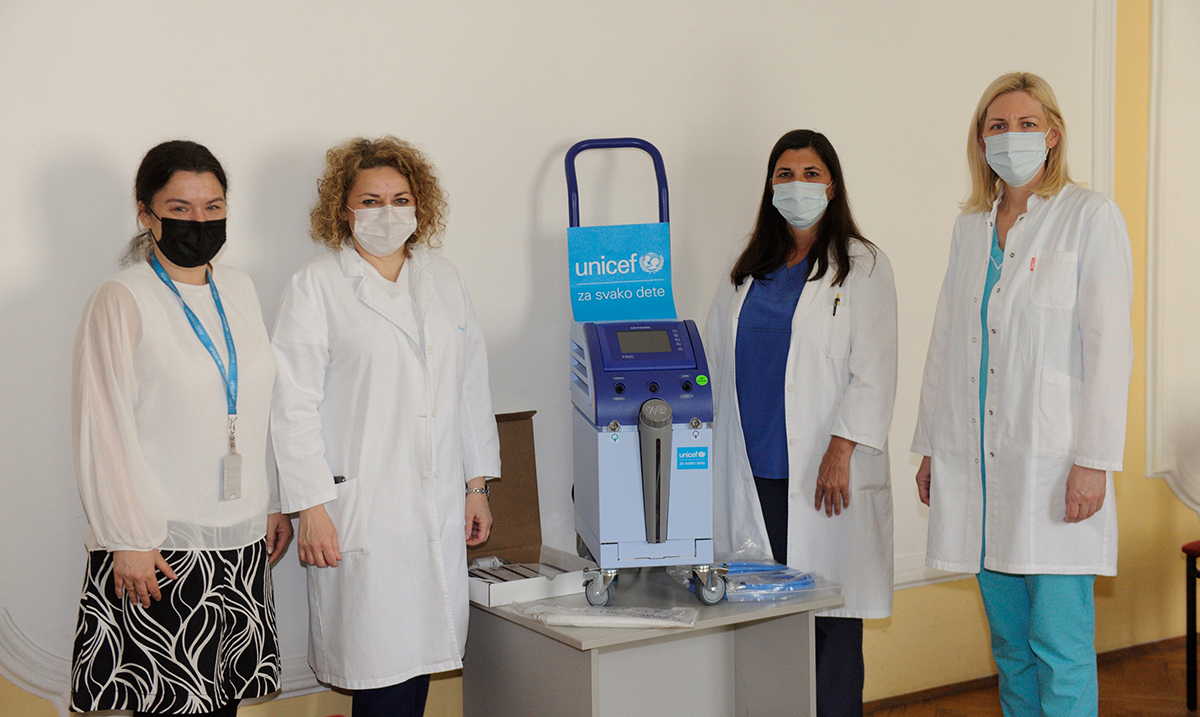 Nakon donacije četiri inkubatora, od kojih su dva prošle nedelje dostavljena Novom Sadu i Kragujevcu, a dva je dobila Dečija klinika u Nišu, UNICEF nastavlja sa podrškom neonatalnim jedinicama u Srbiji. Aparat za terapijsku hipotermiju asfiktične novorođenčadi, u vrednosti od 2.419.000 dinara, namenjen je lečenju prevremeno rođenih beba koje su rođene sa problemima disanja i nedostatkom kiseonika prilikom porođaja.