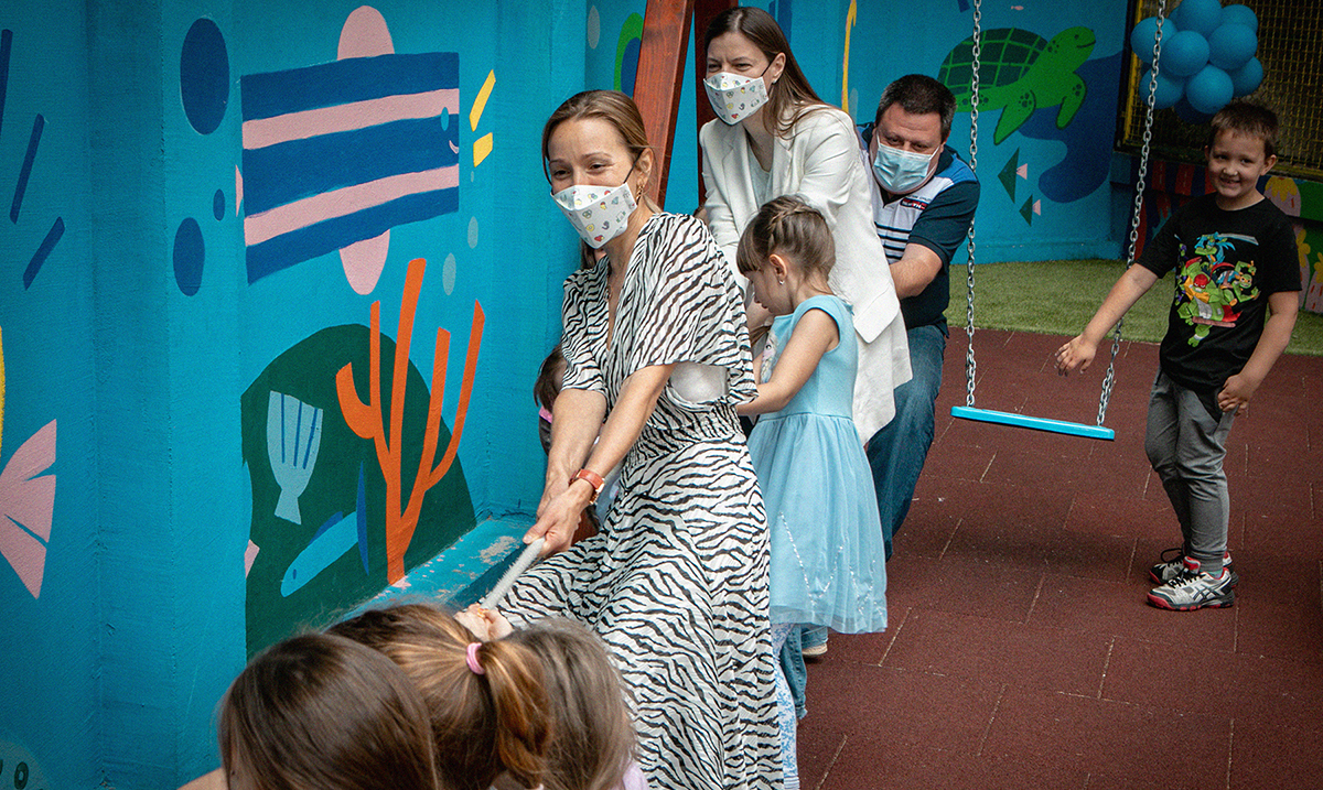 Tim Novak Đoković Fondacije rekonstruisao je igralište u skladu sa svim neophodnim standardima i opremio ga najnovijom opremom koja podstiče dečiju maštu. Međutim, falilo je još nešto kako bi ono zasijalo u punom sjaju. Studenti sa Fakulteta primenjenih umetnosti, uz smernice njihove profesorke  Jane Oršolić, odmah su prepoznali kako svojim talentom mogu dodatno ulepšati prostor. Naslikavši  živopisni mural, na zidu koji okružuje igralište, od vrtića „Dambo“ napravili su pravo malo podvodno kraljevstvo.